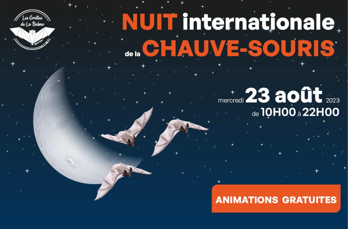 La Nuit Internationale de la Chauve-Souris, c’est un événement organisé par la SFEPM (Société Française pour l’Etude et la Protection des Mammifères, qui vous invite à y participer partout en France, du 21 juin au 22 septembre. Aux Grottes de la Balme, c’est le 20 août 2025 que nous participerons à ce grand événement.